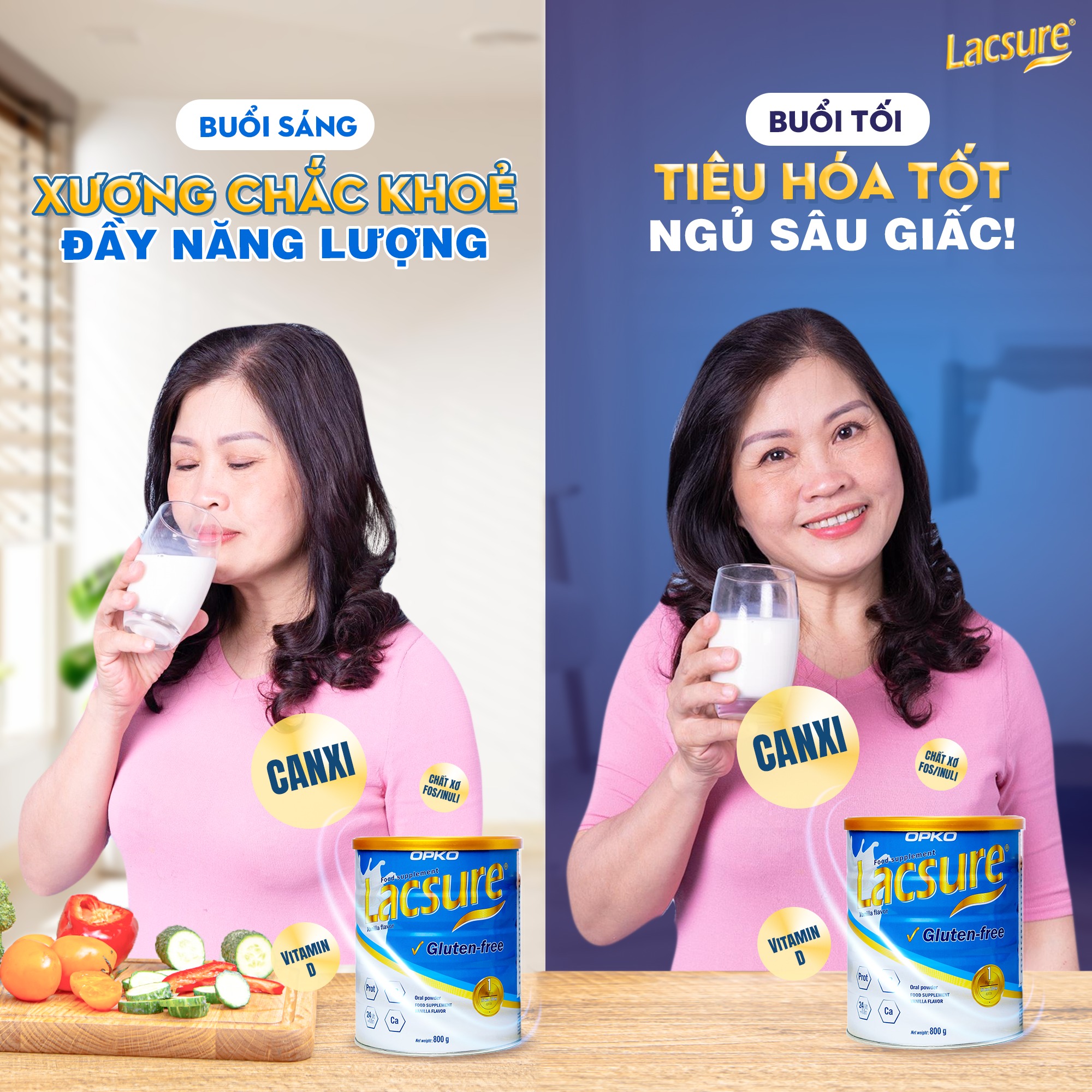 Lacsure chứa sự kết hợp cân bằng giữa protein, canxi, vitamin và khoáng chất giúp bổ sung năng lượng, hỗ trợ hệ xương chắc khỏe và tăng cường sức đề kháng. Đặc biệt, phụ nữ sau 30 tuổi cần nhiều dưỡng chất hơn để duy trì sức khỏe và ngăn ngừa các vấn đề về xương khớp, làn da, nội tiết tố. Với công thức giàu dưỡng chất, Lacsure chính là lựa chọn lý tưởng để bổ sung vào chế độ ăn hàng ngày.